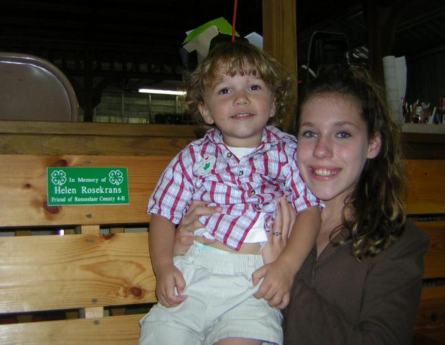 Ashton and I on the bench that is in the 4-H building in memory of my great grandmother, Helen Rosekrans. Before my "Big Mama" passed away, she would spoil me with love. I miss her.